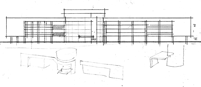 The main building façade faces the main road and the pedestrian road coming from METU campus while the rear façade is designed in accordance with the recreational area behind. The volumetric identity is in harmony with the surrounding buildings and the topography. The building, which has office spaces surrounding an inner alley, has a cafeteria for social interaction on the ground floor as a meeting point for office personnel and visitors.