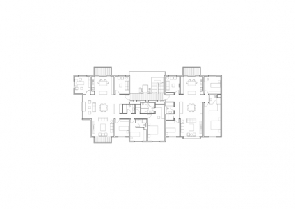 Life inside the homes is thought to evolve around the family and family 'togetherness.' Internal spaces are arranged around the idea of the dinner table tying the family together; with a touch of traditional homes, the divan anterooms, Eldem's residences, Cansever's renovations, Aalto's Hansaviertel and Krier's Rauchstrasse residential designs. Hence the rooms opening up to the same hallway, lesser circulation and a reenactment of a life bringing living, eating and kitchen areas together in a single space.
