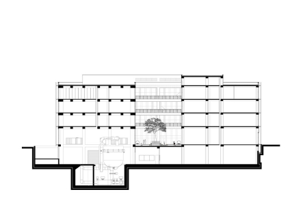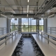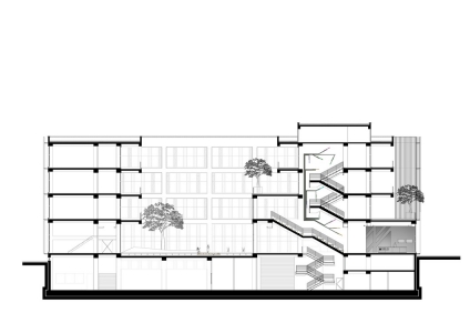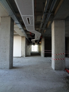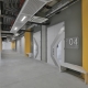 The basement floor has wide corridors that allow for vehicle entry. The laboratories are accessible through forklift corridors and cargo lifts that connect to each floor and receive service from the outside. Hardened concrete is used for the floor. The technical fittings are exposed by avoiding the use of suspended roof systems, which is complementary with the architectural language.