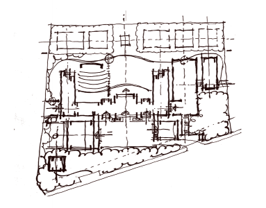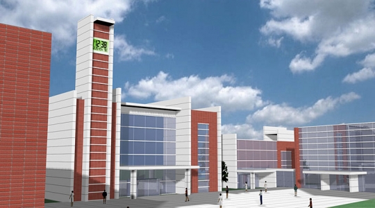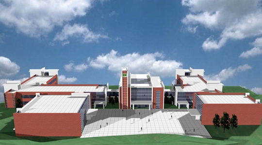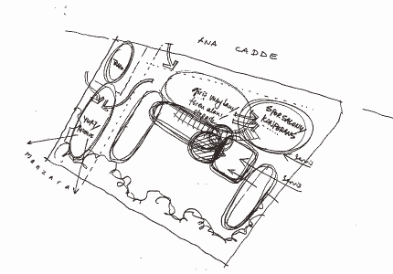 Giriş bölgesinde oluşturulan tören alanının etrafında yönetim, konferans salonu ve kapalı spor salonu bulunmaktadır. Yönetim bloğu köprülerle derslik bölümüne bağlanmıştır. Anaokul binası için ayrı bir giriş tasarlanmıştır.